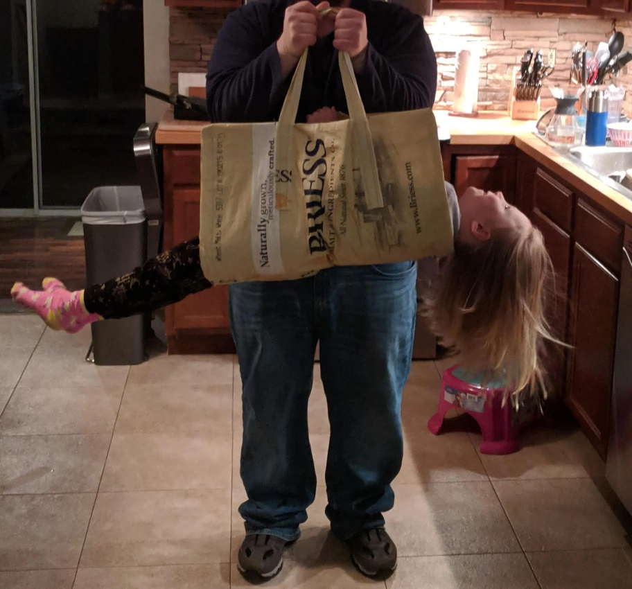 He also asked for me to make him a log carrier out of grain bags. I thought it would be an interesting and creative project. It's a pretty simple thing, just two grain bags sewn together almost like a pillow. I added some extra support to the handles and accross the carrier incase he is carrying some extremily heavy logs. It's pretty skookum, can even carry children haha.